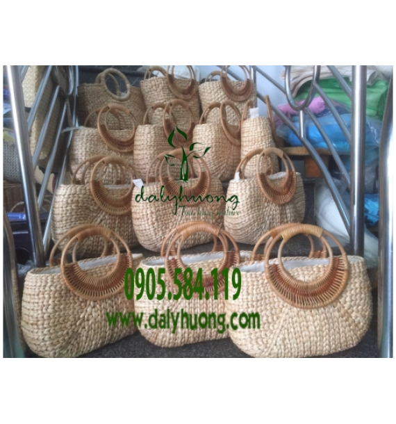 Giỏ lục bình bầu quai mây, lớt vải cotton mộc miệng dây kéo, kích kích :26*12*H20cm