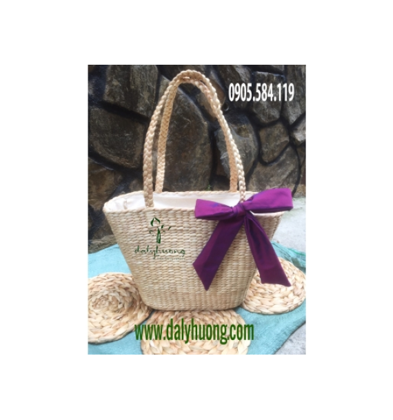 Giỏ lục bình bầu đan thưa gắn nơ lụa