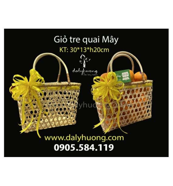 Giỏ tre gói quà, quai mây sang chảnh, giỏ chịu lực đến 10 kg, kích thước giỏ : 30*13*H20cm