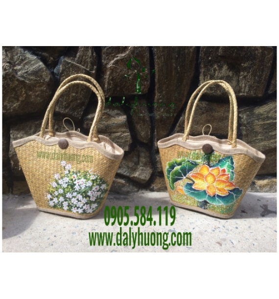 Túi cỏ bảng miệng lượn sóng, lót vải cotton mộc miệng dây rút, bên trong có túi nhỏ , kích thước : 40*18*H28cm