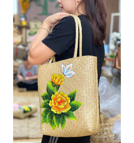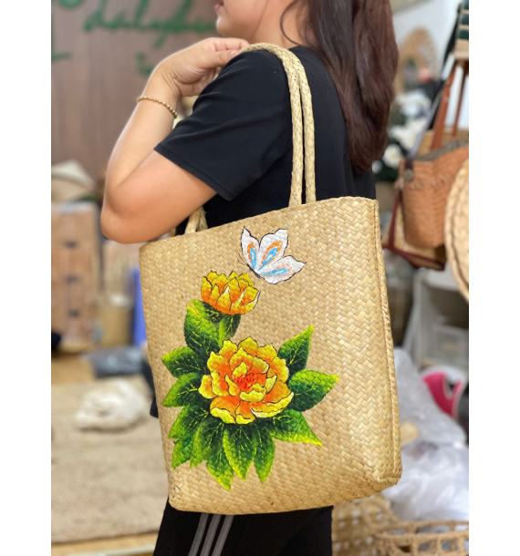Túi bàng chữ nhật vẽ hoa phối quai lục bình bím