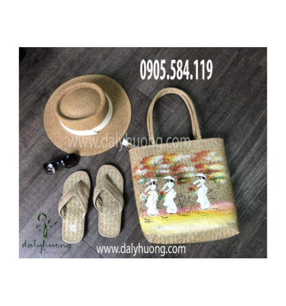 Túi cỏ bàng chữ nhật lót vải cotton mộc miệng dây kéo, bên trong có túi nhỏ, vẽ tay hình 3 cô gái, kích thước : 30*10*H33cm , bỏ đươc tập vỡ nhé.