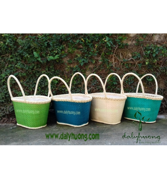 Túi lá buông oval nhuộm màu, quai quấn lá buông, lót vải cotton mộc miệng dây rút, kích thước giỏ , size M: 40*22*H24cm, Size S: 26*18*H20cm