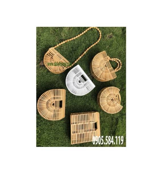 Túi xách được làm từ chất liệu tre tự nhiên Việt Nam , với các hình dáng khác nhau như: tròn, bầu, vuông, đeo chéo.........